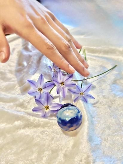 天然石のプレジャーワンドをマザーアースからの神秘の贈り物とするなら、このガラスアート内なる華シリーズは人が生み出す洗練された美しさ、エレガンスをテーマとしています。この世界には神様がもともと与えてくれている自然の美しさと、人が長い間かけて技を磨き生み出す芸術という2つの美が存在します。
